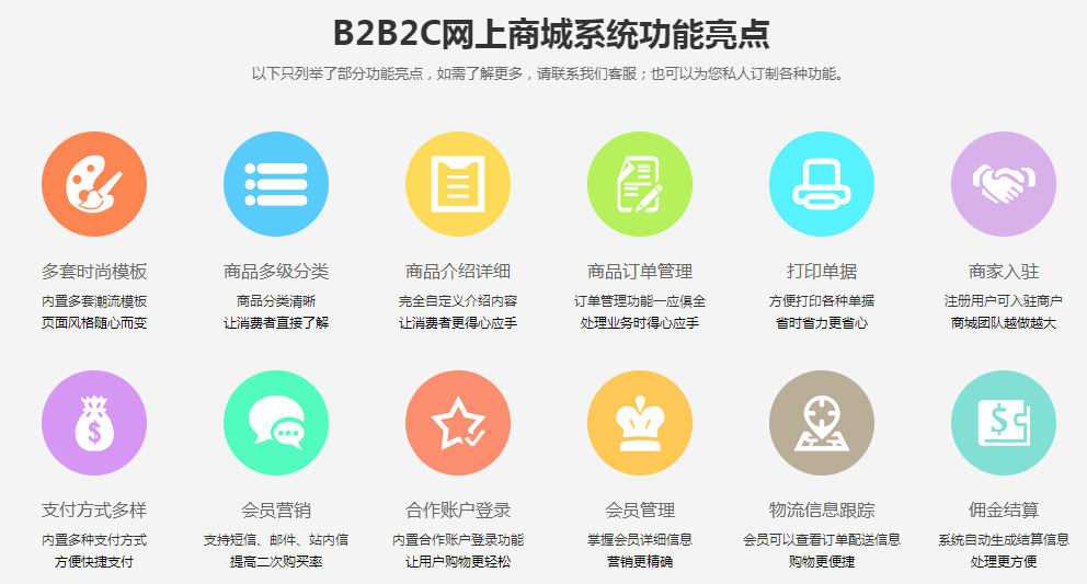 B2B2C/C2C多商戶(hù)商城系統(tǒng),分銷(xiāo)系統(tǒng),微分銷(xiāo)等一系列電商系統(tǒng)全方位為企業(yè)提供解決方案。